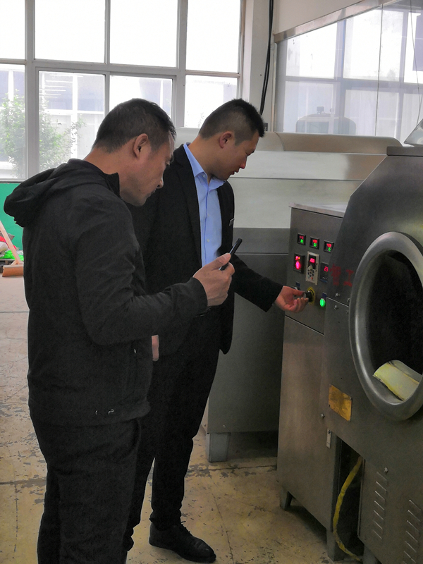 新疆客戶來(lái)許昌智工參觀考察電磁炒貨機(jī)炒制葵花籽