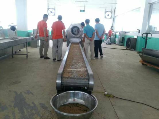 陜西客戶來許昌智工測(cè)試6米長(zhǎng)智能電磁炒貨機(jī)流水線炒豌豆!產(chǎn)能:每小時(shí)六百公斤!歡迎有意向的朋友隨時(shí)到廠考察試機(jī)!                                  詳情咨詢熱線:189 3910 1388
