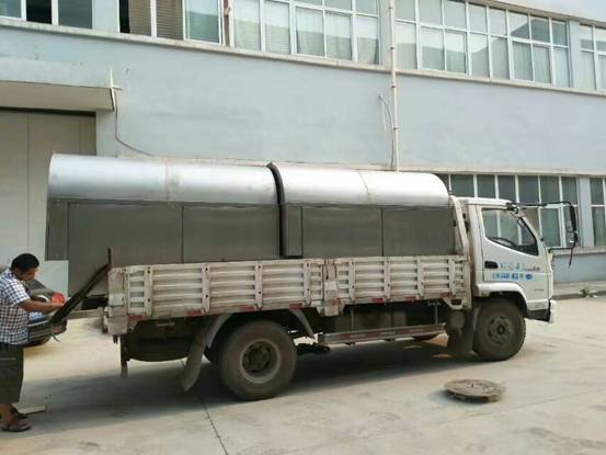 三門峽客戶訂制的兩臺土炒饃電磁炒貨機裝車發(fā)貨