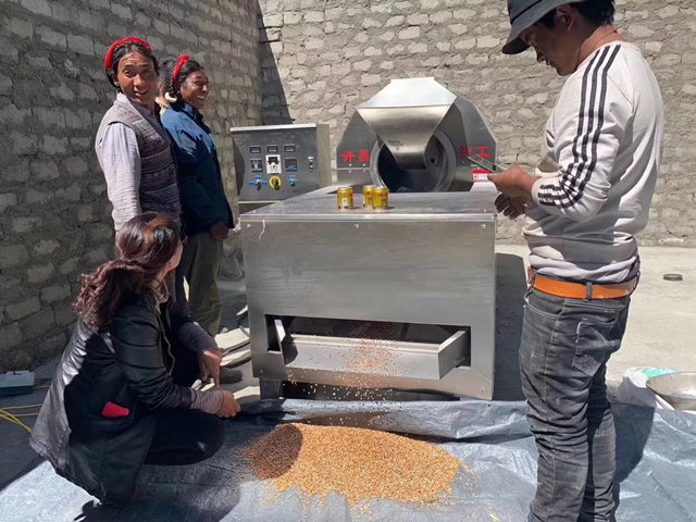西藏十五個行政村電磁炒青稞機安裝調(diào)試第一天!