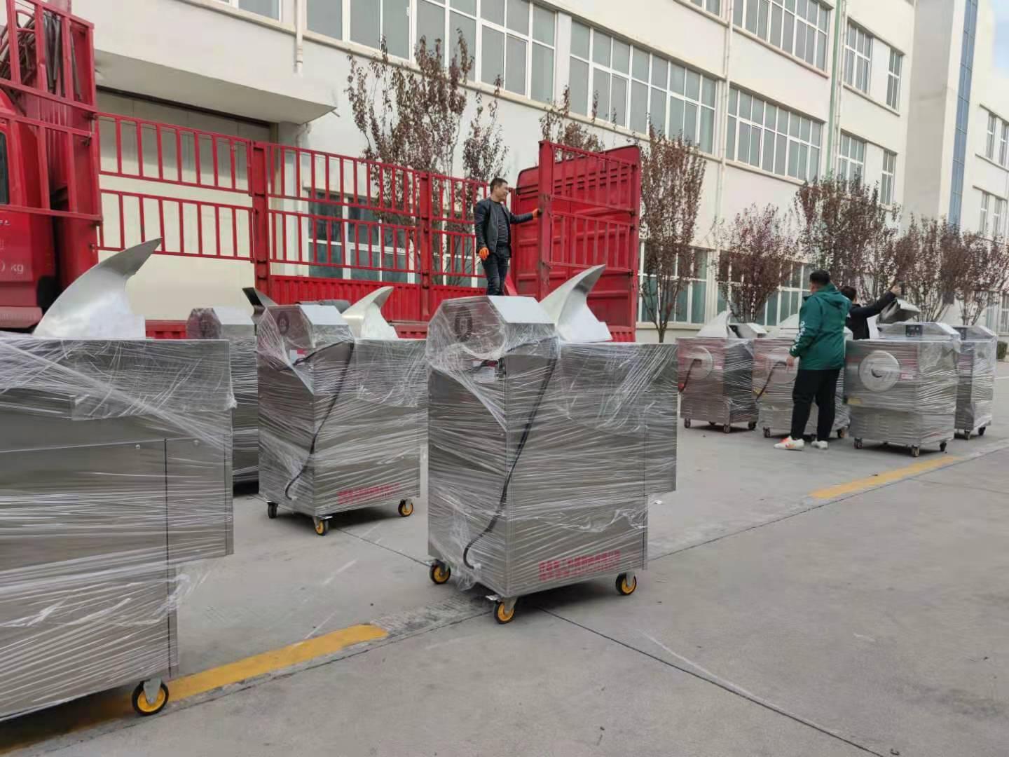2020年12月11號(hào)下午,某知名連鎖店再次訂購20臺(tái)DCCZ5-4小型多功能電磁炒貨機(jī),正在專車裝車發(fā)貨中?。?!