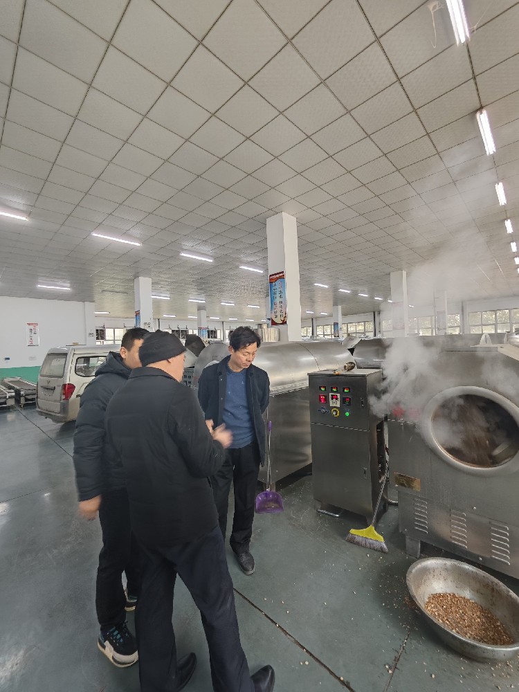 平頂山客戶來廠試機300斤炒鍋炒花生米磨醬
