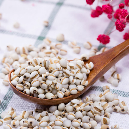 薏米,味甘、性微寒??梢越∑⒀a中、利水消腫,可用于治療脾虛濕盛導致的小便不利、水腫浮腫、腹脹等癥狀;可以清腸熱、排膿癰,用于治療腸癰、咳濃痰、肺癰胸痛等癥狀;薏米中含有豐富的維生素B,可以預防腳氣,對病毒感染的贅疣也有一定的治療作用;薏米還含有維生素E,具有抗氧化作用,可以起到淡斑、除粉刺、改善膚色的美容功效;含有的硒元素,可以有效抑制癌細胞的繁殖,減少腫瘤的發(fā)病幾率。但是,陰虛體質(zhì)、消化不良及孕早期的孕婦,不易食用薏米。